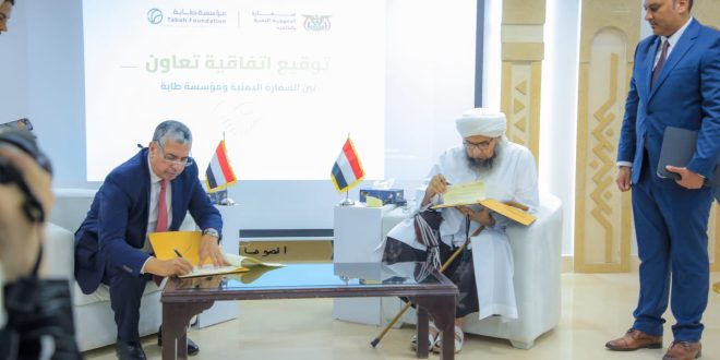وفي ختام الندوة، تم توقيع بروتوكول تعاون رسمي بين مؤسسة طابة والسفارة اليمنية بالقاهرة، بهدف تطوير مبادرات معرفية وتربوية مشتركة تخدم وتعزز خطاب التعايش والحكمة في الفضاء العام.